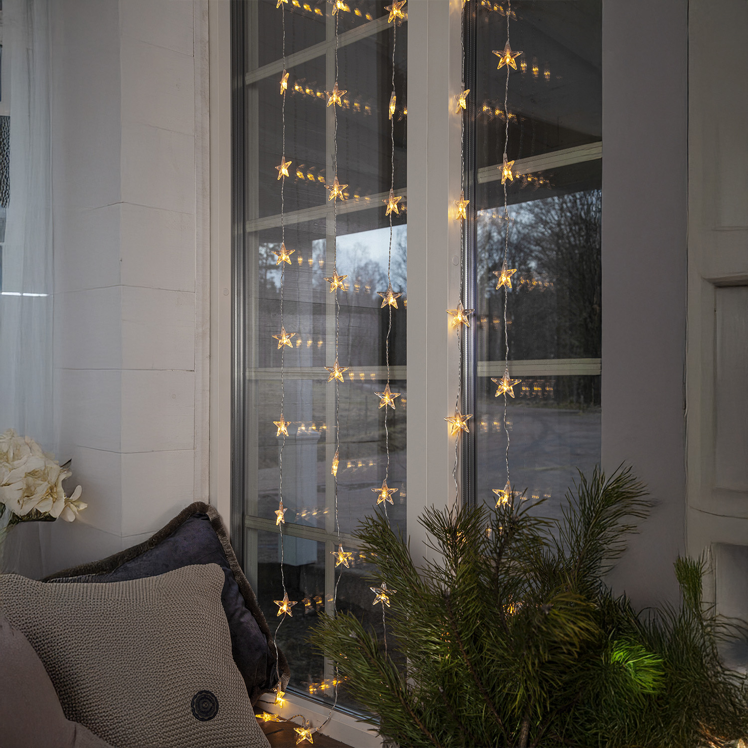 Härlig ljusgardin med varmvitt sken för inomhusbruk. Placera gardinen i fönstret som en härlig dekoration med vackert ljus.